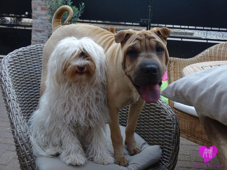 Sie züchtet Shar Pei's und auch Chinese Crested. So werden die Chinese Crested schon mit Shar Pei's groß und kennen ihre Eigenheiten gut. Grundsätzlich muss man sagen das die "Chinesen" aber so oder so gut zueinander passen.