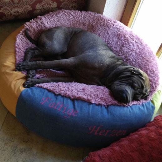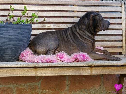 Auf "seiner heiligen" Bank. Natürlich mit Fell extra für ihn :-)