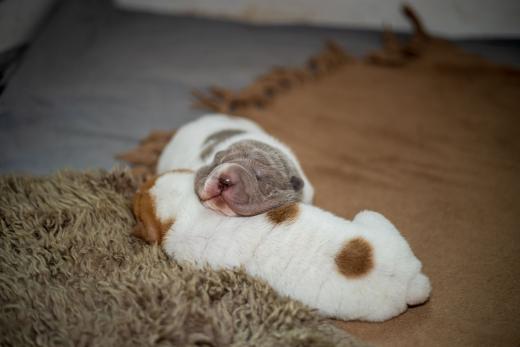 auf dem Kissen gefällt es denen. Wie allen Welpen :-)