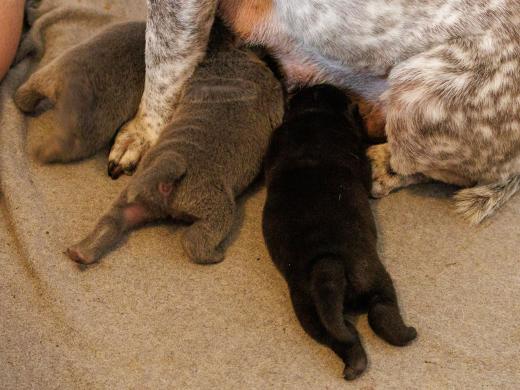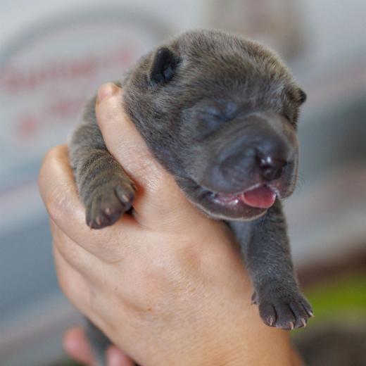 Bran von den Faltigen Herzen (aus dem zweiten B-Wurf), der bei Kristina und Séan O'Donoghue lebt und Maple hatten im Dezember einen erfolgreichen Deckakt, und heute wurden erfolgreich drei gesunde Welpen geboren. Alle (Mutter und Welpen) sind wohlauf.