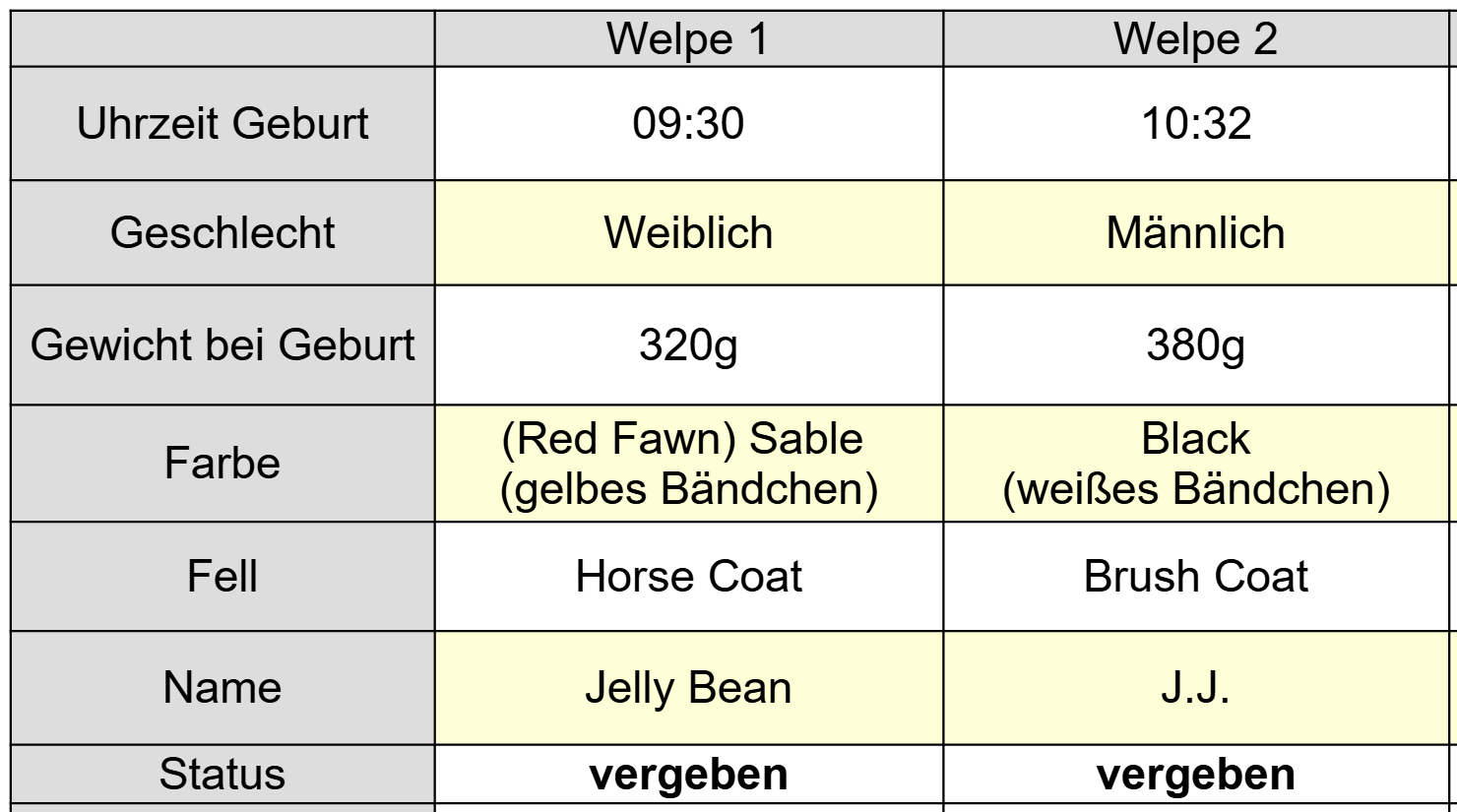 Hinweis: DIE WELPEN AUS DIESEM WURF SIND BEREITS ALLE VERGEBEN!