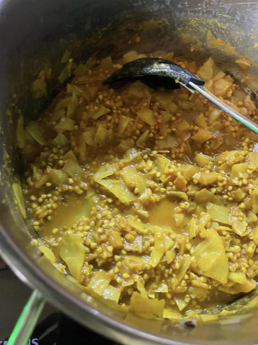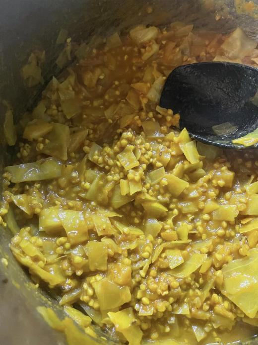 Weißkohl mit Birne, Buchweizen, Kurkuma und Rucola