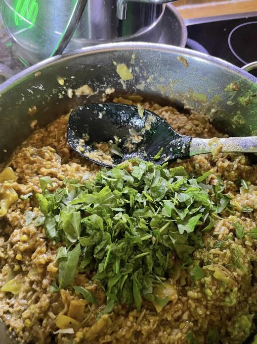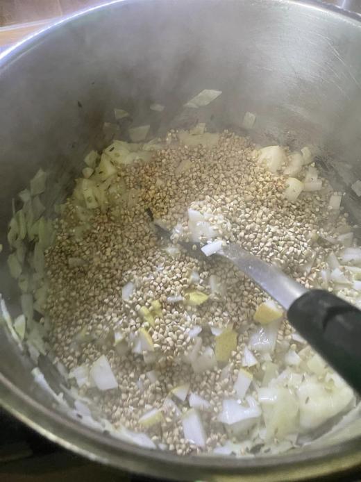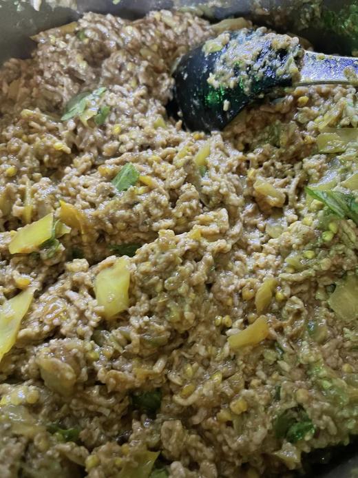 Für die süße Bande gekocht … Weißkohl in fett andünsten wenn die Hunde mögen bisschen Kümmel dazu .. Birne dazu und Buchweizen.. mit Karotten Suppe aufgegossen .. Kurkuma dazu ( ist gerade im Winter gesund . Immun stärkend und Blut bildend ) und köcheln lassen bis das Buchweizen gar ist .. Fleisch dazu und mit Gänsebrühe aufgießen ( für den Geschmack ) Flohsamen Schalen dazu und nur kurz leicht andünsten.. nicht mehr kochen lassen .. damit alles schön saftig bleibt … vom Herd nehmen Zusätze dazu und für die Magensäure Ruccula dazu … ein Stück Butter dazu und unterrühren .. abkühlen und guten Hunger