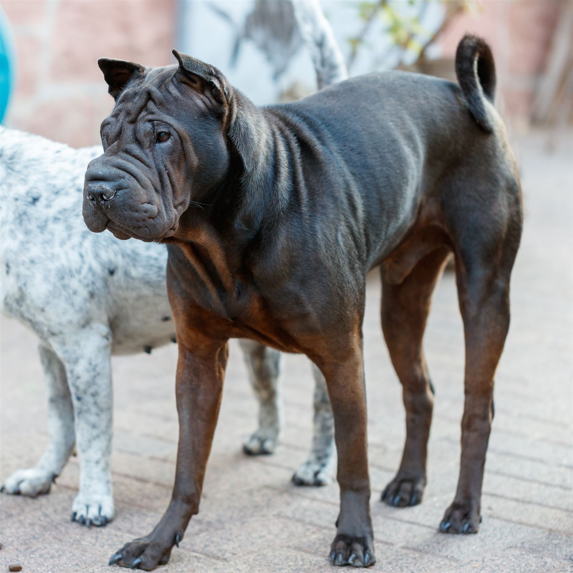 Ella haben wir von Sabina Schumann, die in Österreich ein Gestüt mit Ferienwohnungen und eben eine Shar Pei Zucht betreibt. Es ist dort ganz außergewöhnlich, weil die Hunde sich auf dem Gelände vollkommen frei bewegen können und überhaupt nicht eingeschränkt sind. Sie werden mit Pferden, sonstigen Tieren und den Feriengästen groß. Ella ist eine Horse Coat Hündin mit traditionellen Anlagen, aber dennoch vollkommen im FCI Standard der Rasse. Sie war für ihr Alter unglaublich gut sozialisiert und hatte vor überhaupt nichts Angst oder fühlte sich trotz des Umzuges sofort bei uns wohl. Sie ist eine sehr lebhafte und vollkommen friedliche Hündin mit viel Potential für die Zucht.